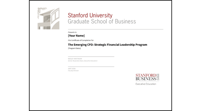 Upon successful completion of The Emerging CFO: Strategic Financial Leadership Program, you will be awarded a Certificate of Completion in recognition of your achievement and the investment you have made in your education and professional development.